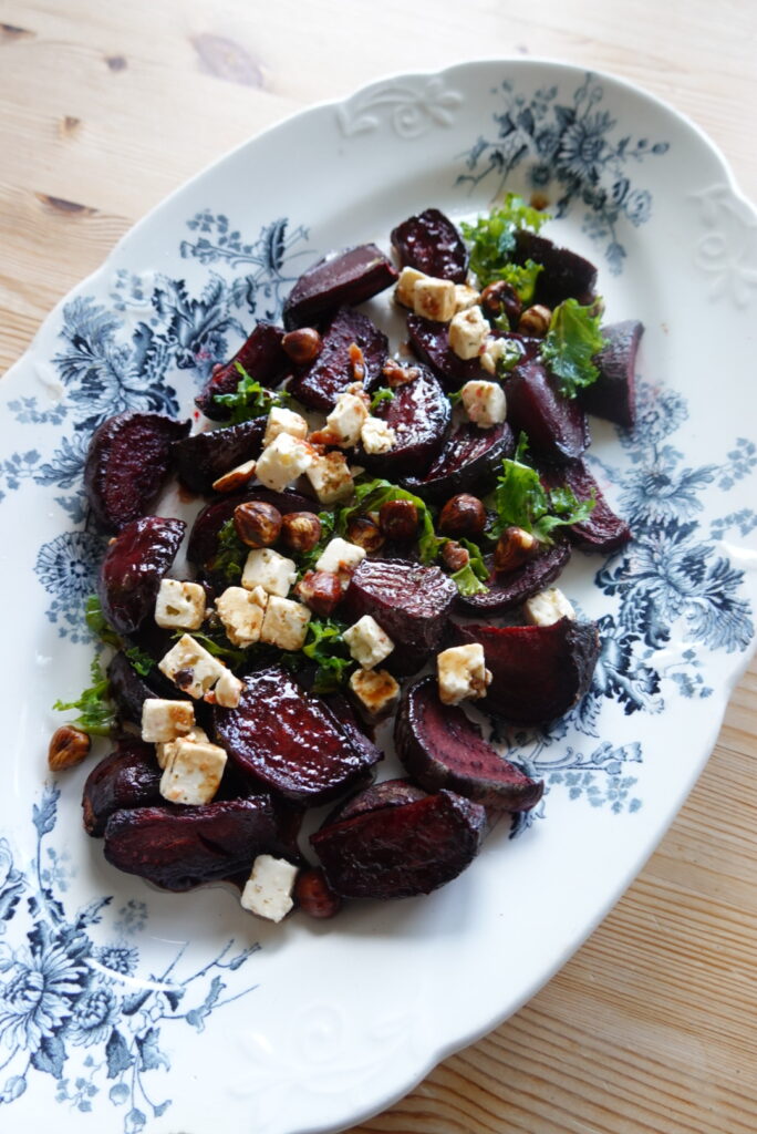 Ovnsbakte rødbeter med feta, honning og nøtter