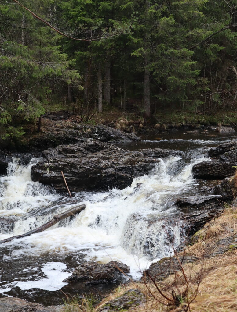 En liten tur ut i øsende regnvær ble det på søndag ettermiddag. Bilde fra fossen nedenfor huset mitt.