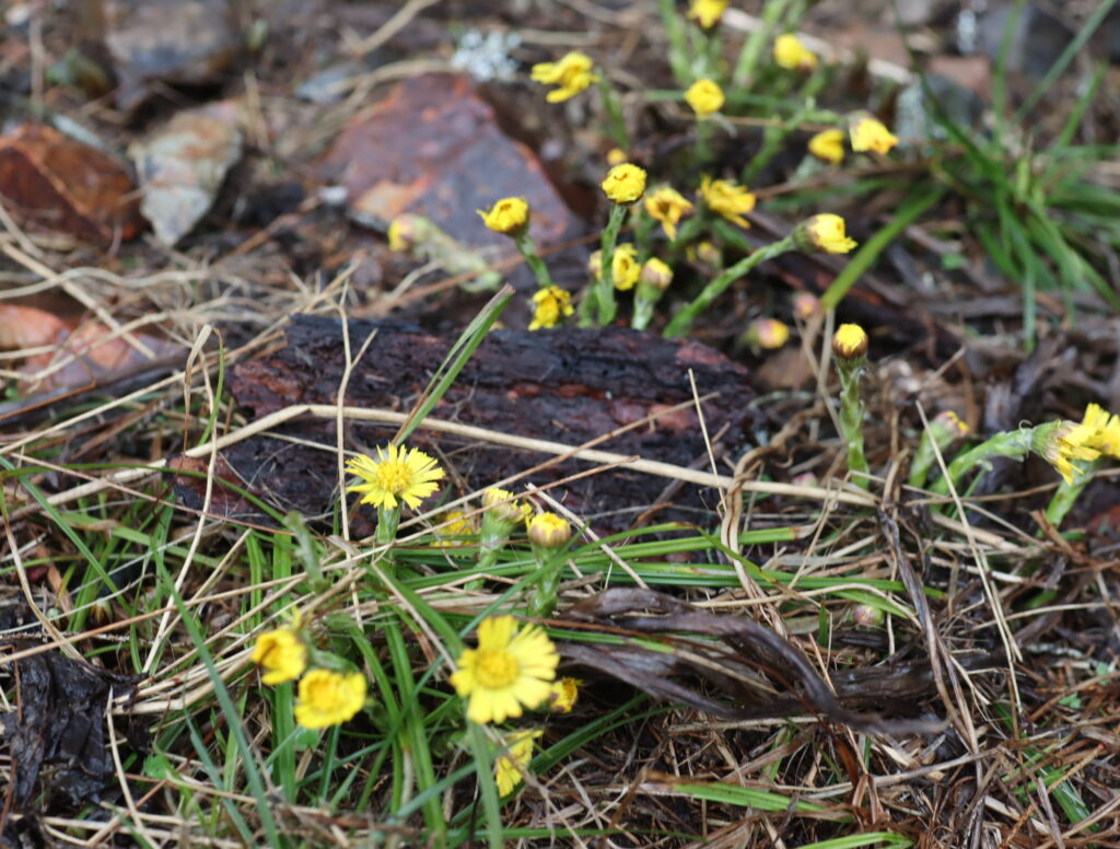 Det var vårlig ute i skogen også. Masse hestehov langs stien der jeg gikk.
