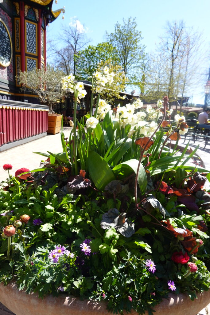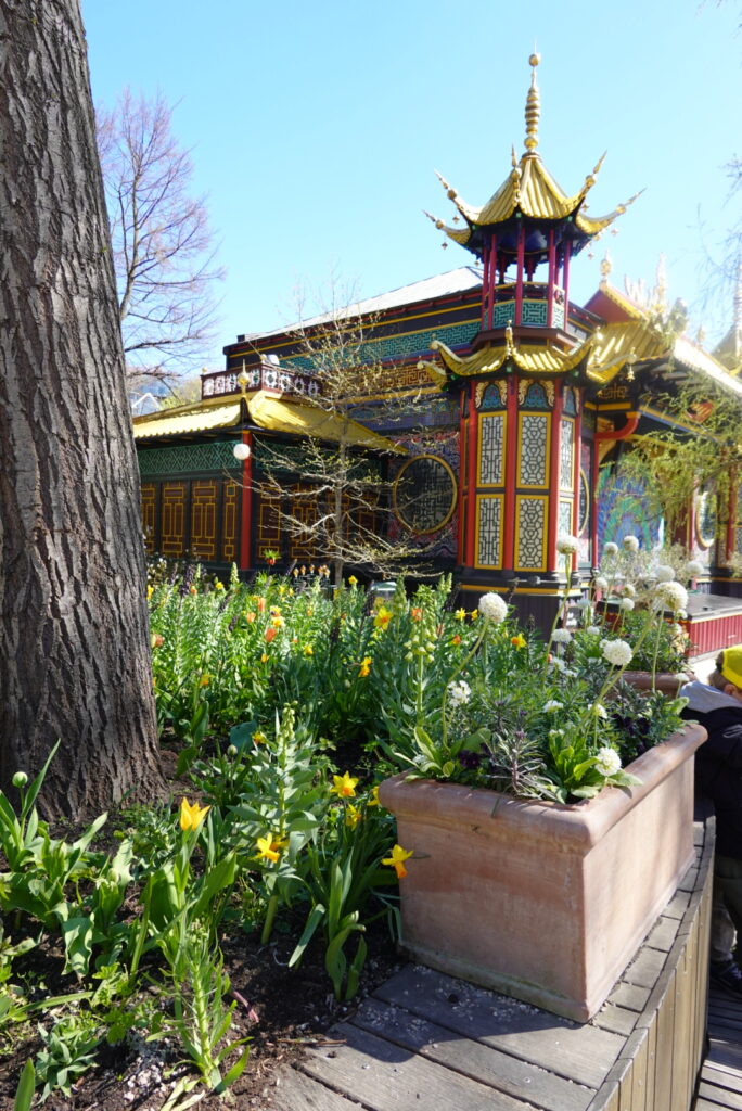 Jeg gledet meg også over de vakre blomsterbedene og de mange stemningsfulle omgivelsene i parken. Underveis tok jeg en pause på en kafé og koste meg med en deilig dansk kanelsnurre.