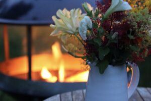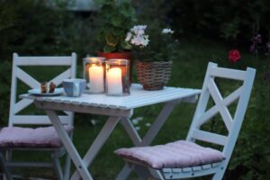 Selv om det begynner å bli litt kjøligere på kveldene nå, er det fortsatt fint å sitte ute. Riktig stemningsfullt