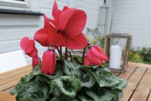 Endelig har sommeren kommet til hagen! Plommetreet står i full blomst. Og vårblomstene blomstrer i bedene! Maria nøkleblom – den