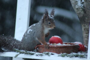 Jeg har daglig besøk av fugler og ekorn i hagen, og det er en stor glede! De små hagegjestene skaper