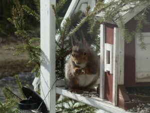 En feriedag i hagen – jeg drikker kaffe og morer meg med ekorn
