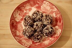 Her følger oppskrift på havrekuler; en enkel konfekt som er veldig raskt laget, og veldig god. Barna mine elsket slike
