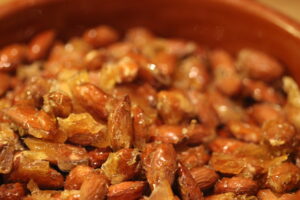 Brente mandler i mikrobølgeovn Av og til er det koselig å by på ekte hjemmelaget godteri, og brente mandler stiller