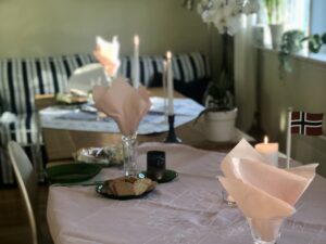 Disse bildene er fra en januarkveld i fjor, i 2020, da jeg hadde venninneklubben på besøk. På den dagen visste