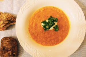 Dette er en kjempegod suppe som lages av rimelige ingredienser en ofte har i huset. En klatt matlagingsyoghurt med sitronsmak