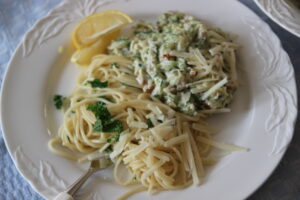 Pasta med squash- og ricottasaus Her følger en oppskrift på en god og kremete vegetarisk pastarett. Retten er lettlaget og