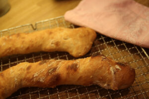 Fikk lyst til å dele en oppskrift på noen kjempegode baguetter; vridde baguetter. Baguettene lages med en veldig løs deig