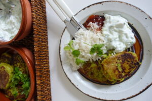 Her følger oppskrift på vegetariske indiske blomkålsfrikadeller. Blomkålsfrikadellene er raskt laget, og de smaker godt med ris, yoghurtsaus og mangochutney