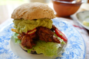 Dette er en knallgod burger som er laget med Pulled Oumph. Vet du ikke hva Pulled Oumph er for noe,