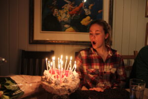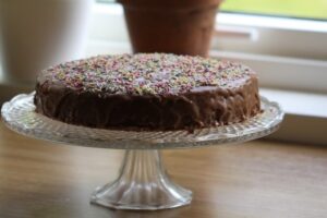 Dette var bursdagskaken da Cathinka, yngste datter, fyllte år tidligere denne uken. Den er veldig enkel, og alt er naturlig