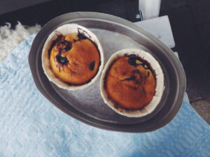 BLÅBÆRMUFFINS 12 store eller 18 små Ovn 200 grader ca 20 minutter 2 egg 120 sukker 300 g mel 1