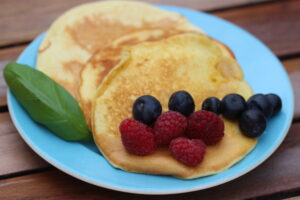 Oppskrift på amerikanske pannekaker uten bakepulver. Av og til er det OK å unne seg en frokost med ordentlige amerikanske