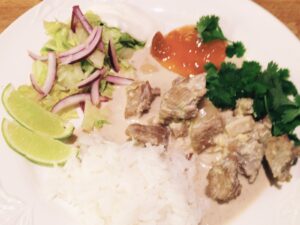 Her en oppskrift på en god thai rød curry kyllinggryte. Kyllinggryten er lettlaget, og den har en sterk og spennende