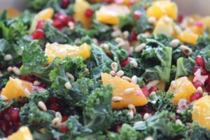 Dette er virkelig en fargerik og frisk salat, full av nyttige vitaminer og mineraler! Grønnkål må vel være en av