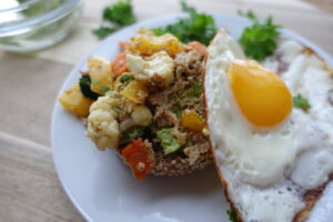 Dette er en smakfull og proteinrik vegetarrett som det passer fint å servere til lunch eller som en lettere middag.