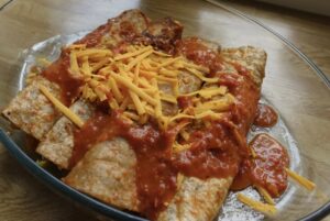 Her en oppskrift på kjempegode vegetarenchiladas. De er fylt med en spicy bønneblanding og stekte krydrede grønnsaker. Her har jeg